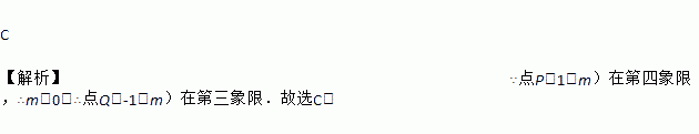 C 【解析】∵点P(1,m)在第四象限,∴m<0,∴点Q(-1,m)在第三象限.故选C.