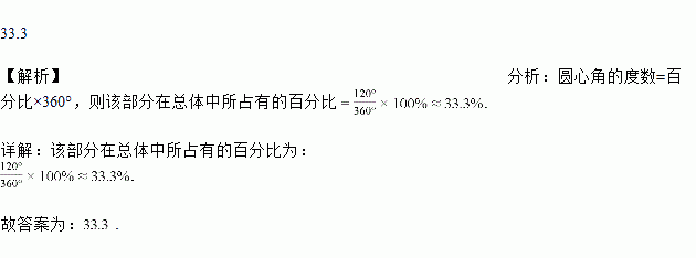 一个扇形统计图,某一部分所对应扇形的圆心角为120°,则该部分在总体中所占有的百分比是_____%.