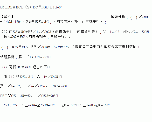 (2) 在(1)的结论下,如果,又能得到哪两条线段平行,请说明理由.![]()