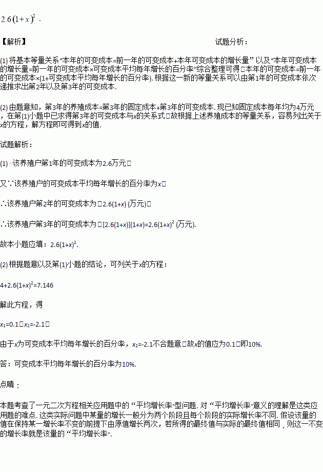 (2)如果该养殖户第3年的养殖成本为7.146万元,求可变成本平均每年增长的百分率