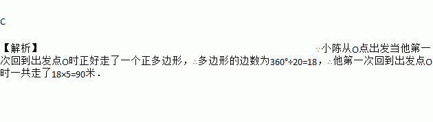 如图,小陈从O点出发,前进5米后向右转20°,再前进5米后又向右转20°,…这样一直走下去,他第一次回到出发点O时,一共走了( )