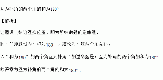 命题“和为180°的两个角互为补角”的逆命题是___________________________.