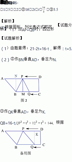 如图,在四边形ABCD中,AD∥BC,∠C=90°,AD=21cm,BC=16cm,DC=12cm,动点P从D开始沿DA向A以2cm/s的速度运动;动点Q从点C开始向B以1cm/s的速度运动.P、Q分别从点D、C同时出发,当其中一点到达端点时,另外一点也随之停止运动,设运动时间为ts.