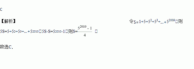 为了求1+2+22+23+…+22008+22009的值,可令S=1+2+22+23+…+22008+22009,则2S=2+22+23+24+…+22008+22009+22010,因此2S﹣S=22010﹣1,所以1+2+22+23+…+22009=22010﹣1.仿照以上推理计算出1+5+52+53+…+52009的值是( )