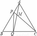 如图,点P、Q分别是边长为4cm的等边△ABC边AB、BC上的动点,点P从顶点A,点Q从顶点B同时出发,且它们的速度都为1cm/s,下面四个结论正确的有________________.