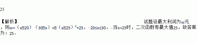 某种商品每件进价为20元,调查表明:在某段时间内若以每件x元(20≤x≤30,且x为整数)出售,可卖出(30﹣x)件,若使利润最大,则每件商品的售价应为_____元.