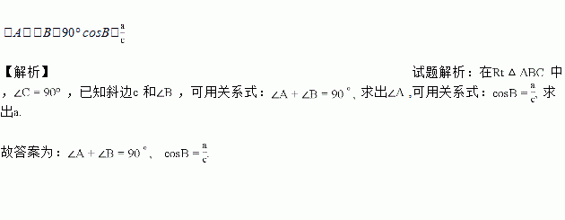 在Rt△ABC中,∠C=90°,已知斜边c和∠B,可用关系式:______________,求出∠A;可用关系式:__________,求出a.