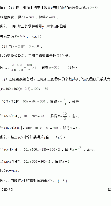 (3)甲、乙两组加工出的零件合在一起装箱,每够300件装一箱,零件装箱的时间忽略不计,求经过多长时间恰好装满第1箱?再经过多长时间恰好装满第2箱?(5分)