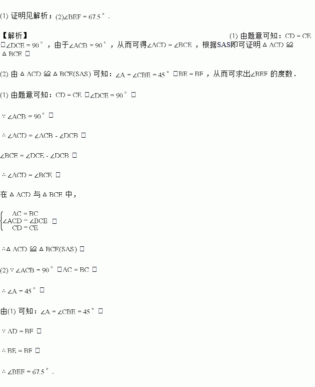 如图,在中,,,D是AB边上一点点D与A,B不重合,连结CD,将线段CD绕点C按逆时针方向旋转得到线段CE,连结DE交BC于点F,连接BE.