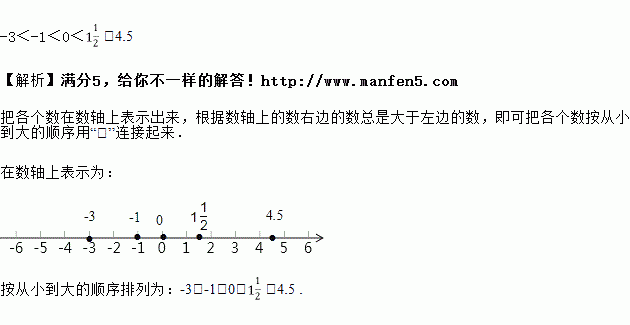 在数轴上表示下列各有理数,并用“”号把它们按从小到大的顺序排列起来.![]()