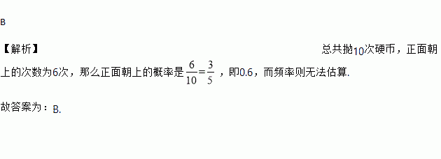 小胡将一枚质地均匀的硬币抛掷了10次,正面朝上的情况出现了6次,若用A表示正面朝上这一事件,则事件A发生的( )