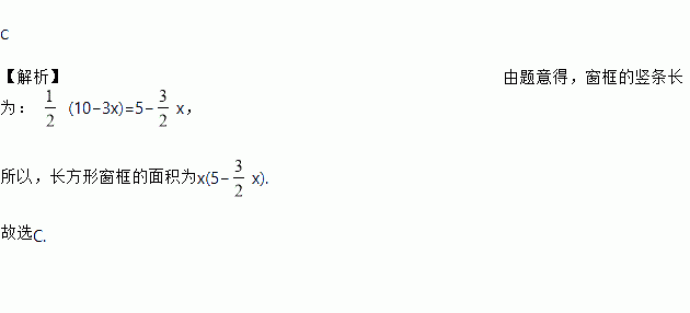 用10米长的铝合金做成一个长方形的窗框(如图),设长方形窗框的横条长度为x米,则长方形窗框的面积为