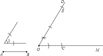 已知∠1、线段AB及射线OM,按下列要求画图:
