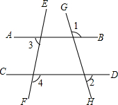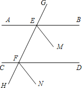 直线AB、CD与GH交于E、F,EM平分∠BEF,FN平分∠DFH,∠BEF=∠DFH,