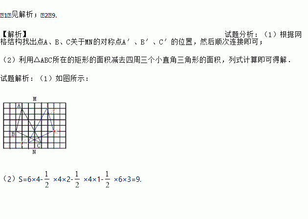 (1)画△ABC关于直线MN的对称图形(不写画法);