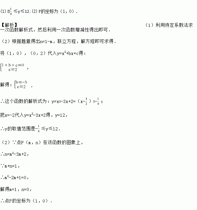 (2)已知点P(m,n)在该函数的图象上,且m+n=1,求点P的坐标.