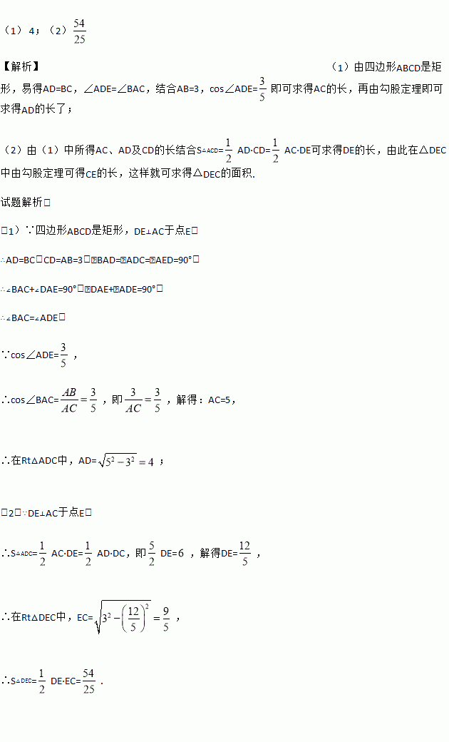 如图,在矩形ABCD中,DE⊥AC于E, ,AB=3,