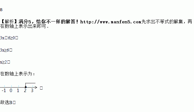 不等式3x﹣6≥0的解集在数轴上表示正确的是( )