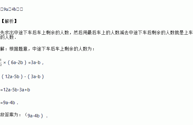 一辆客车上原有(6a﹣2b)人,中途下车一半人数,又上车若干人,这时车上共有(12a﹣5b)人.则中途上车的乘客是_____人.