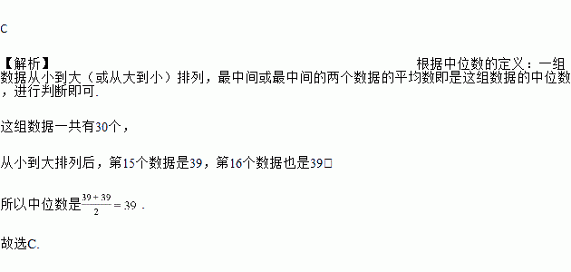 小明抽样调查了某校30位男生的衬衫尺码,数据如下(单位:cm)