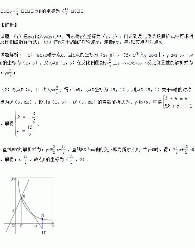 (x>0)图象上的点,在x轴上是否存在点P,使得PB+PD最小?若存在,求出点P的坐标;若不存在,请说明理由.