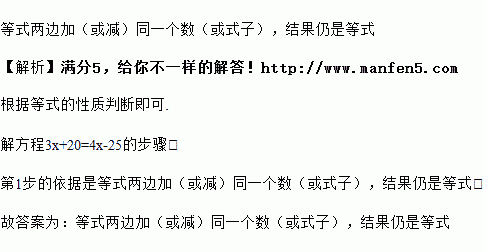 下面的框图表示解方程3x+20=4x﹣25的流程.第1步的依据是_____.