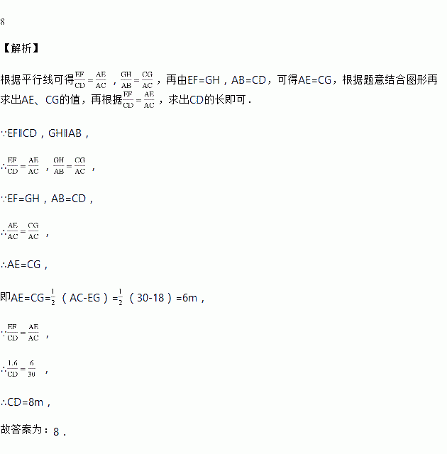 ,两个路灯的高度相等,两个路灯之间的距离![]()