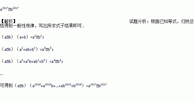 可得到(a﹣b)(a2016+a2015b+…+ab2015+b2016)=____.