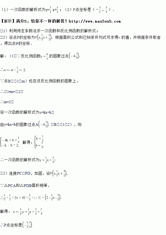 (2)P是线段AB上的一点,连接PC、PD,若△PCA和△PDB面积相等,求点P坐标.