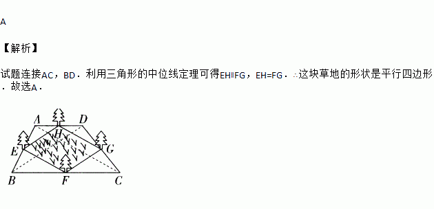 小刚家院子里的四棵小树E,F,G,H刚好在其梯形院子ABCD各边的中点上,若在四边形EFGH上种满小草,则这块草地的形状是 ( )