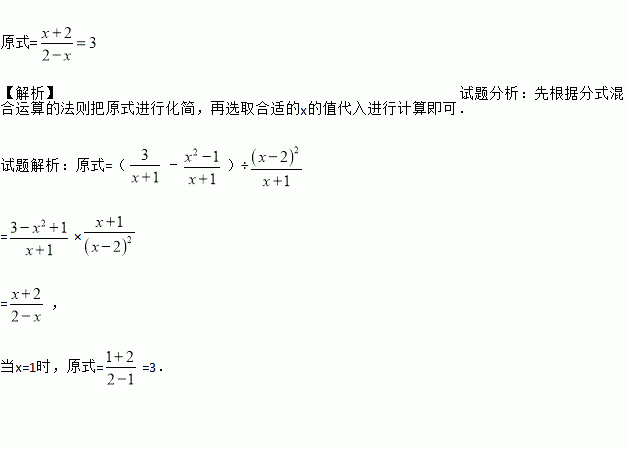 先化简:(﹣x+1)÷,然后从﹣1≤x≤2中选一个合适的整数作为x的值代入求值.