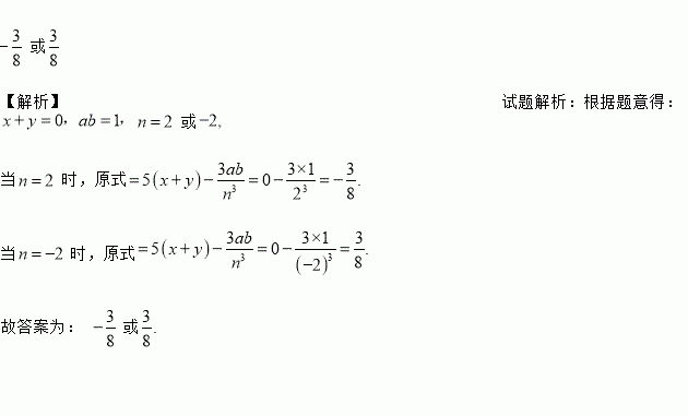 若x、y互为相反数,a、b互为倒数,|n|=2,则5x+5y﹣=_____.