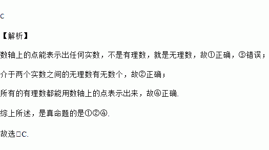 下列说法:①数轴上的点对应的数,如果不是有理数,那么一定是无理数;②介于4与5之间的无理数有无数个; ③数轴上的任意一点表示的数都是有理数;④任意一个有理数都可以用数轴上的点表示.其中正确的有( )