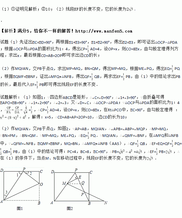 ②若△OCP与△PDA的面积比为1:4,求边AB的长.