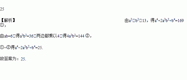已知a2+b2=13,ab=6,则a4-2a2b2+b4=________.