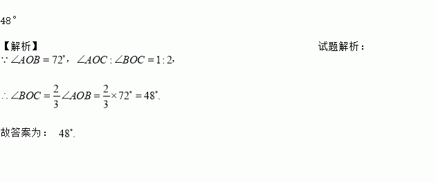 ,射线OC将∠AOB分成两个角,且∠AOC:∠BOC=1:2,则∠BOC=_____.