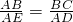 (2)若AE=3,AD=4,BC=6,求BE的长.