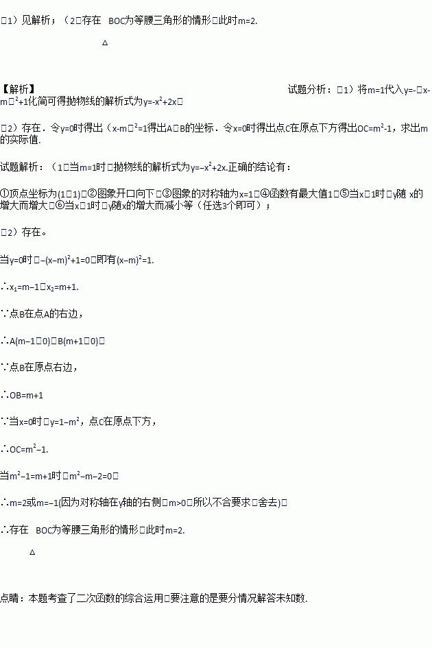 (1)写出m=1时与抛物线有关的三个正确结论;