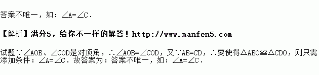 (3分)如图,AC与BD相交于点O,且AB=CD,请添加一个条件 ,使得△ABO≌△CDO.