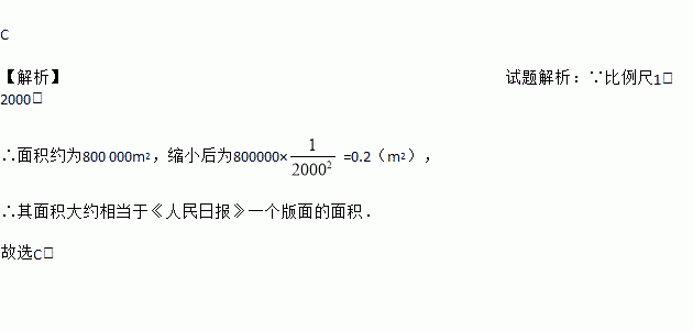 大唐芙蓉园位于古都西安大雁塔东侧,是中国第一个全方位展示盛唐风貌的大型皇家园林式文化主题公园.该园占地面积约为800000m2,小明按比例尺1∶2000缩小后画出该园示意图,其面积大约相当于( )