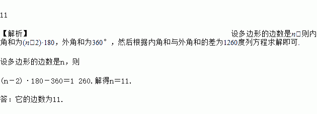 一个多边形的内角和与外角和的差为1260度,求它的边数.