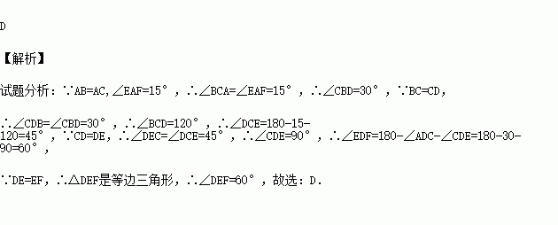如图:∠EAF=15°,AB=BC=CD=DE=EF,则∠DEF等于( )