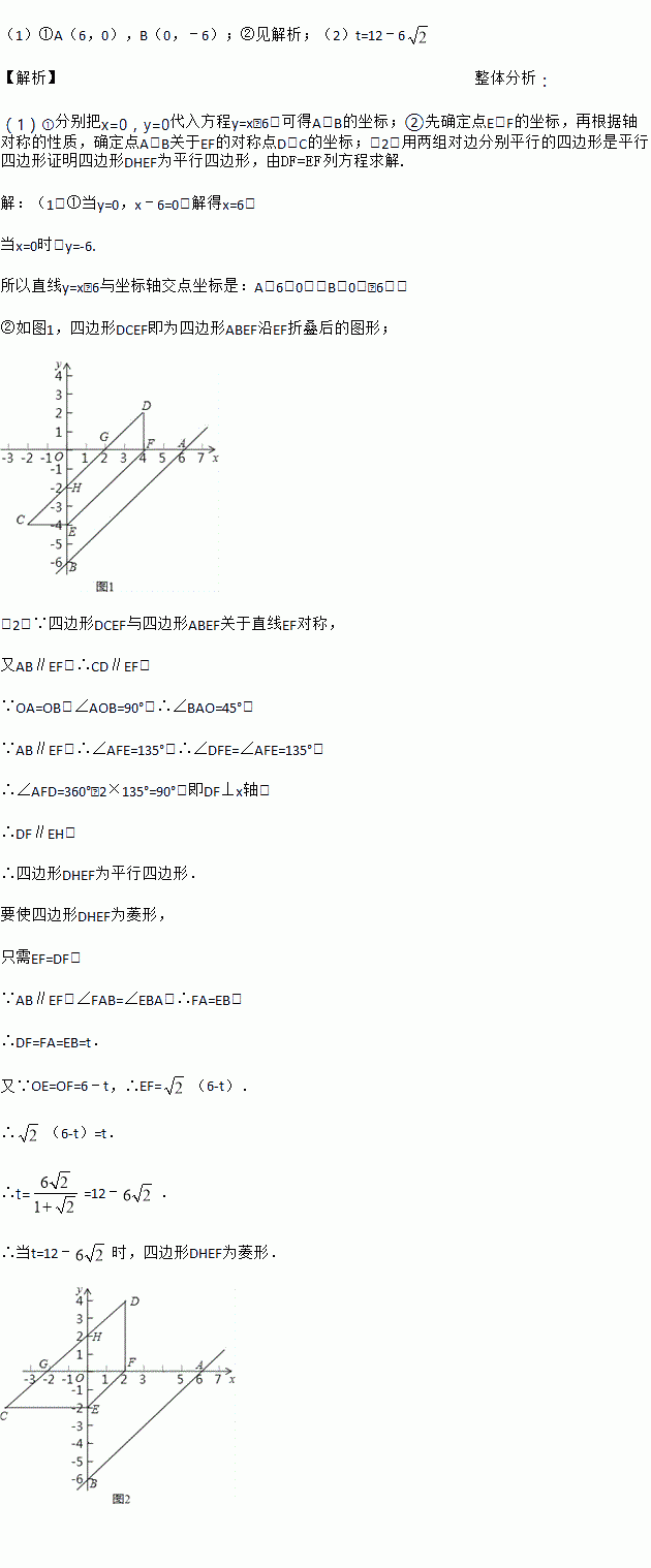 (10分)直线y=x﹣6与x轴、y轴分别交于点A、B,点E从B点,出发以每秒1个单位的速度沿线段BO向O点移动(与B、O点不重合),过E作EF∥AB,交x轴于F.将四边形ABEF沿EF折叠,得到四边形DCEF,设点E的运动时间为t秒.