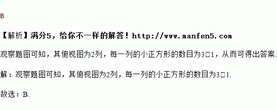 由个大小相同的小正方体组成的几何体,如下图所示.其俯视图是( )