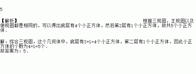 上图是由一些相同的小正方体构成的几何体的三视图,在这个几何体中,小正方体的个数是_______个.
