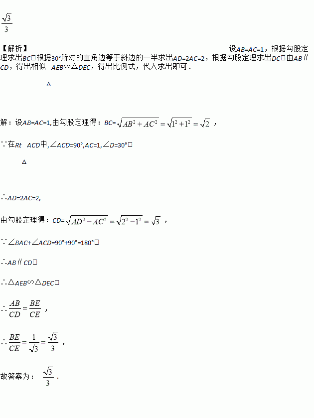 将一副三角尺按如图所示的方式叠放在一起,边AD与BC相交于点E,则