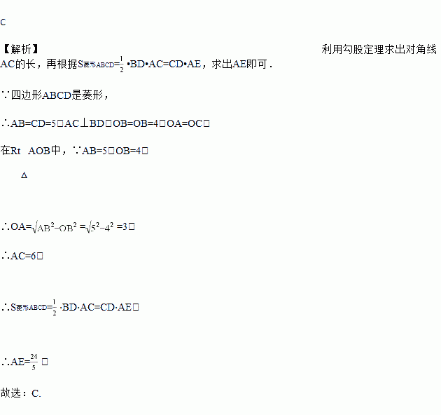 如图,四边形ABCD为菱形,AB=5,BD=8,AE⊥CD于E,则AE的长为( )