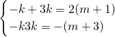 ∴-k,3k是方程-x2+2(m+1)x+m+3=0的两根,