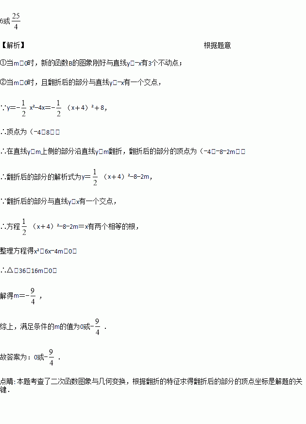 x2-4x在直线y=m上侧的部分沿直线 y=m翻折,翻折后的部分与没有翻折的部分组成新的函数图像,若新的函数图像刚好与 直线y=-x有3个交点,则满足条件的m 的值为_________