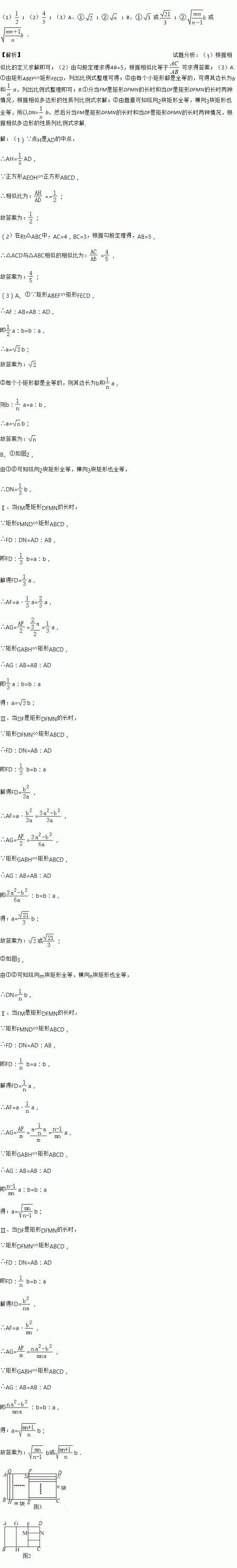 (3)现有一个矩形ABCD是自相似图形,其中长AD=a,宽AB=b(a>b).